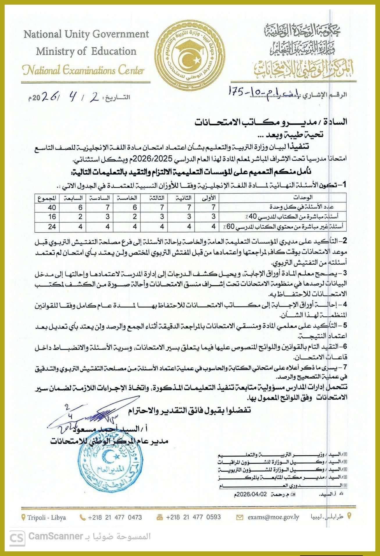 وفي ختام التعميم، حمّل المركز إدارات المدارس مسؤولية تنفيذ هذه التعليمات واتخاذ الإجراءات اللازمة لضمان سير الامتحانات بشكل منظم ووفق الأطر القانونية المعتمدة.