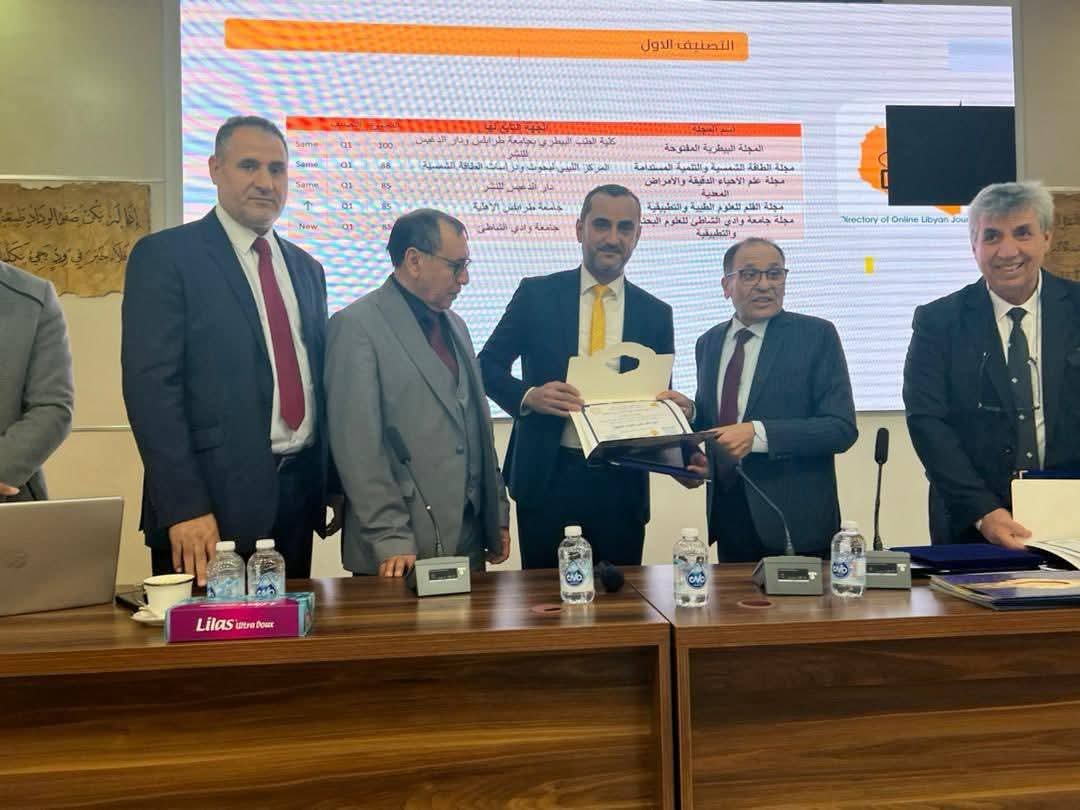 وشهد الحفل استعراض نتائج التصنيف الوطني ومعايير التقييم المعتمدة، التي تهدف إلى الارتقاء بجودة النشر العلمي وتعزيز مكانة البحث العلمي داخل الجامعات الليبية، بما يواكب المعايير الأكاديمية المعتمدة محليًا ودوليًا.